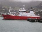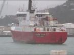 Red hull with a white superstructure. Radio Call Sign displayed in black lettering and numbers on a white background on port and starboard side of the bridge. Vessel name displayed in white lettering on a black background on both sides of the bow. Vessel name and port of registration displayed in white lettering on a black background on the stern, off-set to the port side.