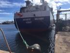 Blue hull, white upper decks