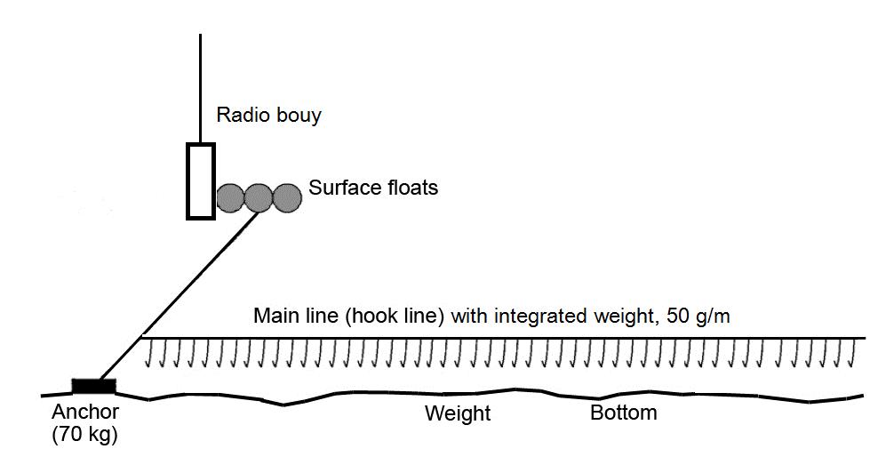 Autoline Integrated Weighted Line: Yes Integrated Weighting: 50g/m Longline weights: No Hook spacing: 1.4m Snood length: 0.4m Gear diagram: |